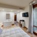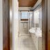 You enter from the bright living area, featuring large windows with an invigorating view of the greenery