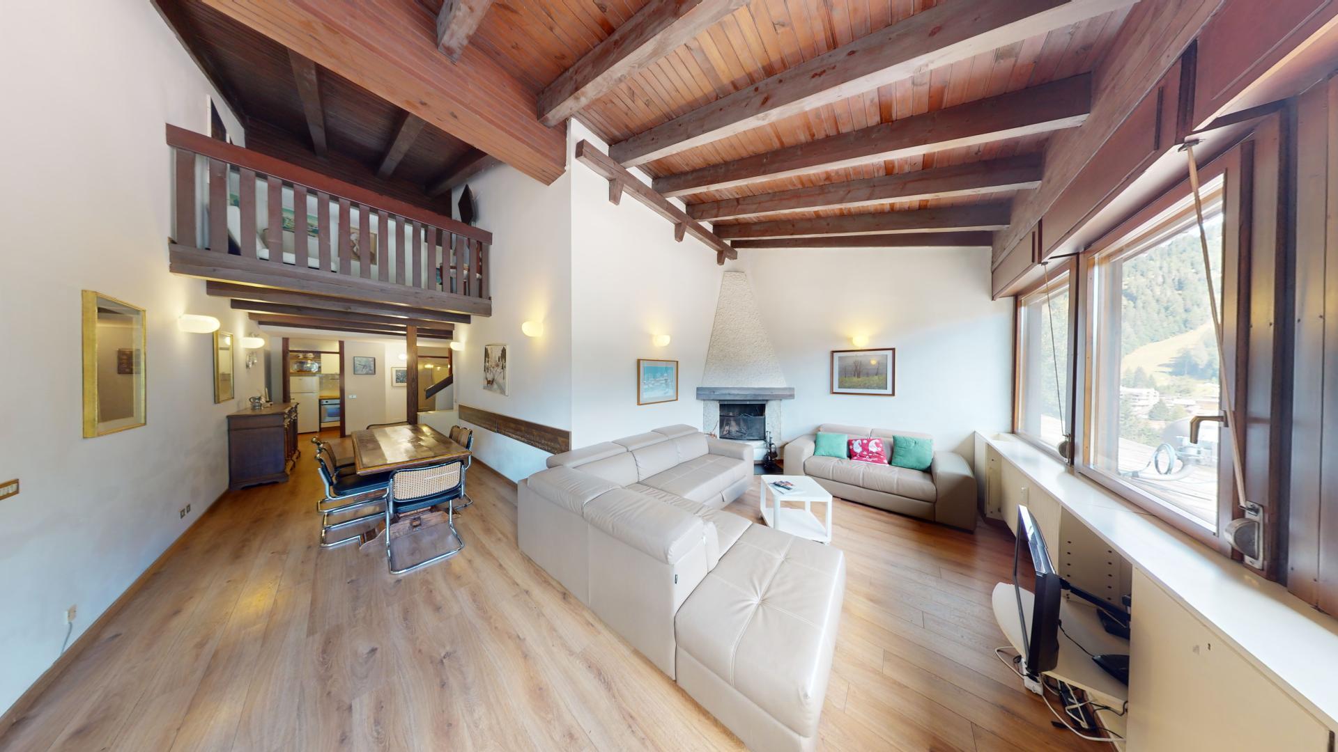 En Madonna di Campiglio, un magnífico ático y super ático con vistas a los Dolomitas. Esta elegante propiedad se distribuye en dos niveles, la 6ª y 7ª planta, para un total de 153 m2. En el primer nivel, la entrada conduce a una cocina moderna y funcional, una zona de comedor con vigas a la vista y un amplio salón embellecido con espectaculares ventanas panorámicas, que ofrece una vista impresionante de los Dolomitas. Un cómodo cuarto de baño completa la planta. En el nivel superior, la casa dispone de cinco refinados dormitorios y dos cuartos de baño, que garantizan el máximo confort para la familia y los invitados. La propiedad incluye una bodega, una plaza de aparcamiento privada y una lavandería común equipada para el material de esquí. A sólo 300 metros de las pistas de esquí y a 400 metros del centro de Madonna di Campiglio, esta residencia combina lujo y practicidad. Con unos bajos gastos de condominio de 1.500 euros al año y la proximidad al renombrado restaurante Pappagallo, la propiedad ofrece un estilo de vida exclusivo en uno de los lugares más deseados de los Dolomitas.