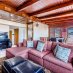 La planta superior se abre a un gran salón con cocina americana independiente, dos dormitorios, dos cuartos de baño y una gran terraza semiperimetral, perfecta para momentos de convivencia o para disfrutar de la tranquilidad y las vistas abiertas.