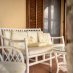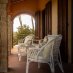 El gran pórtico exterior, conectado con el salón, es uno de los verdaderos puntos fuertes de la villa: un espacio acogedor y evocador desde el que la vista se pierde entre las colinas y los viñedos.