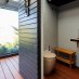 La villa incluye tres dormitorios y dos cuartos de baño de alto nivel, equipados con emotivas duchas y finos acabados. En el centro de la casa, un jardín interior con raras plantas orientales y luz cenital refuerza el vínculo entre los espacios interiores y exteriores.